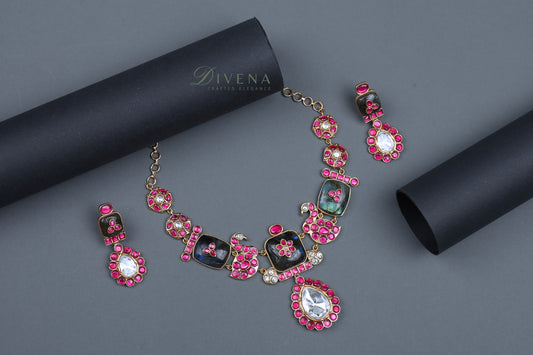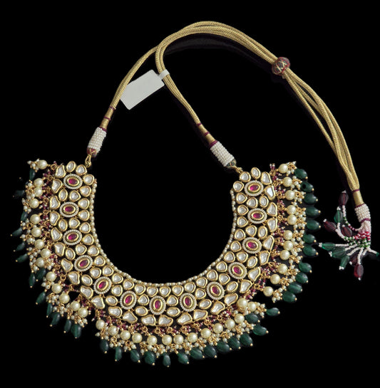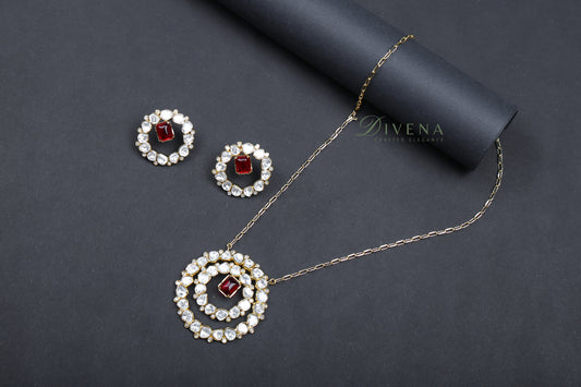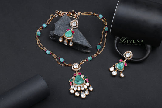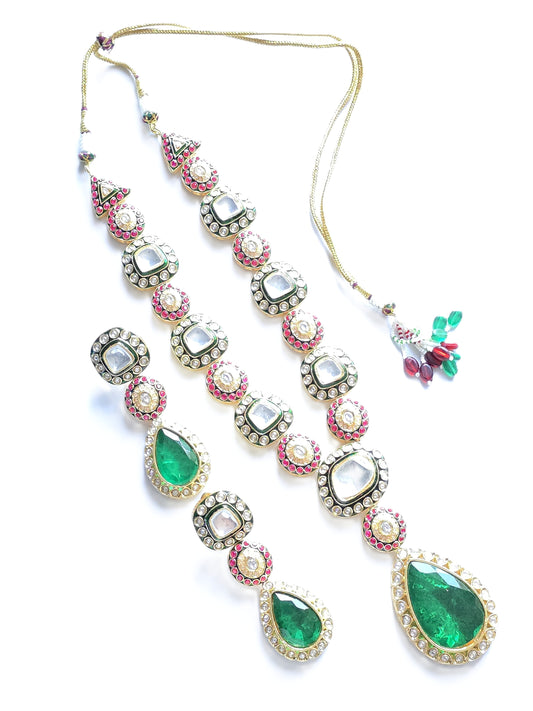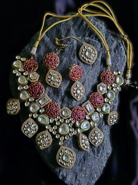 Helena Premium Moissanite Uncut Polki With Doublet Stone Necklace Set