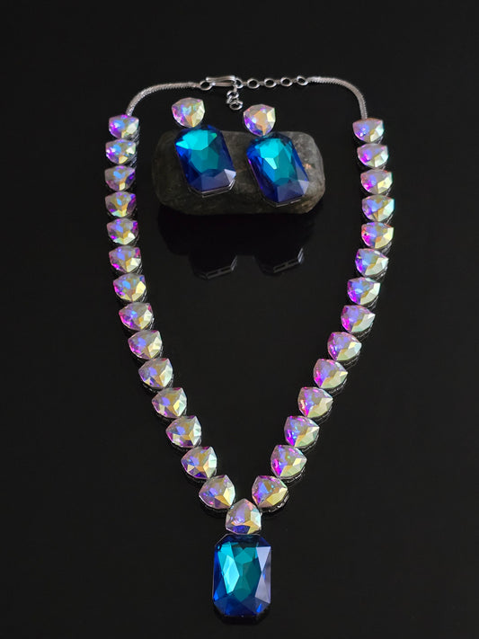 Natasha Designer AAA Crystal & MOP Long Necklace Set