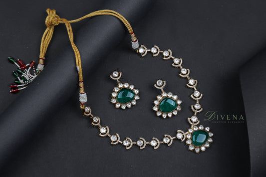 Evelyn Premium Moissanite Polki & Doublet Stone Necklace Set