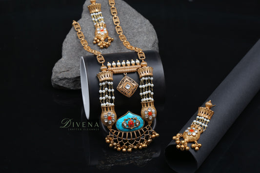 Katherine Handcrafted Polki Necklace Set with Turquoise Stone Inlay Art
