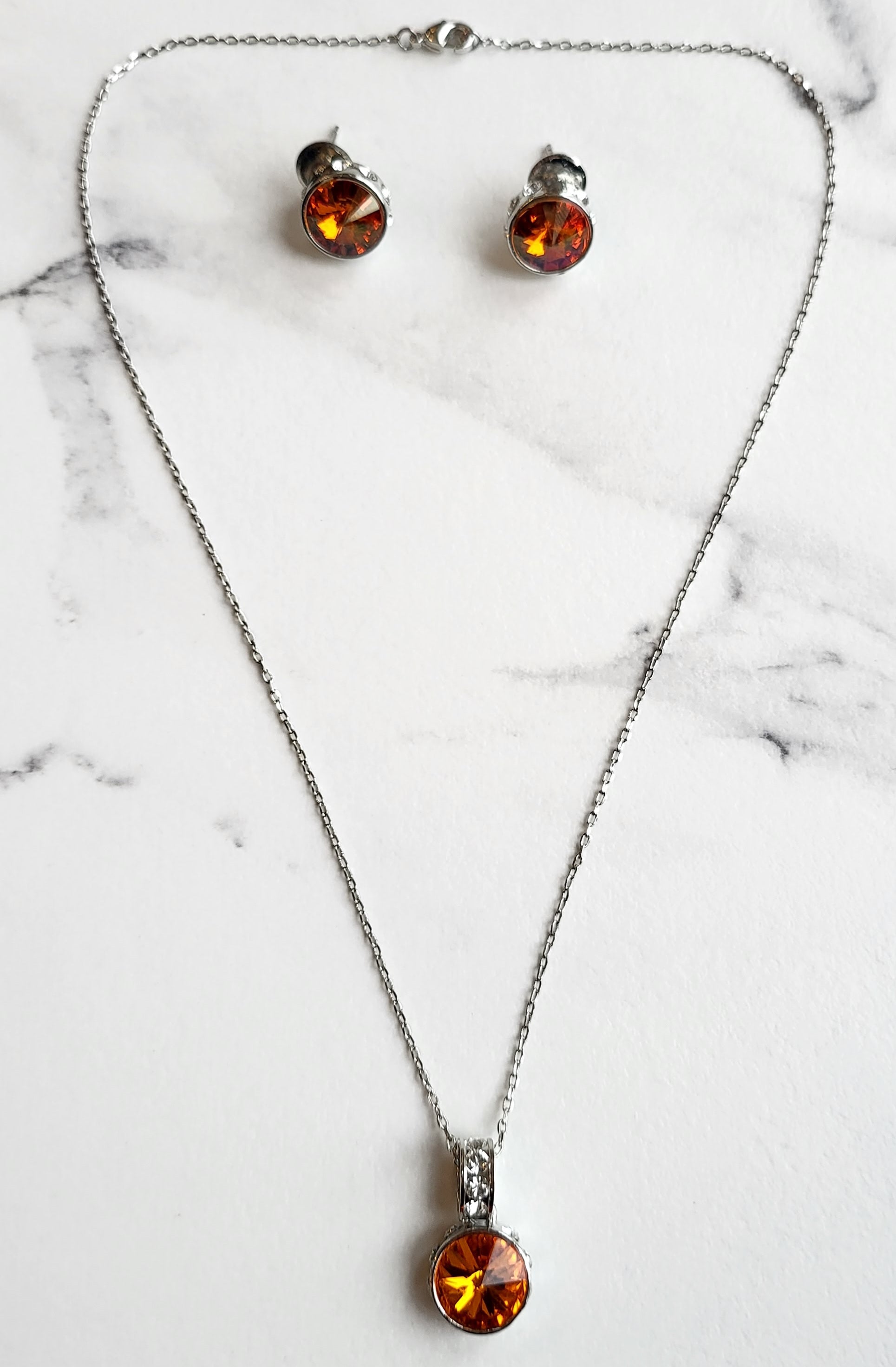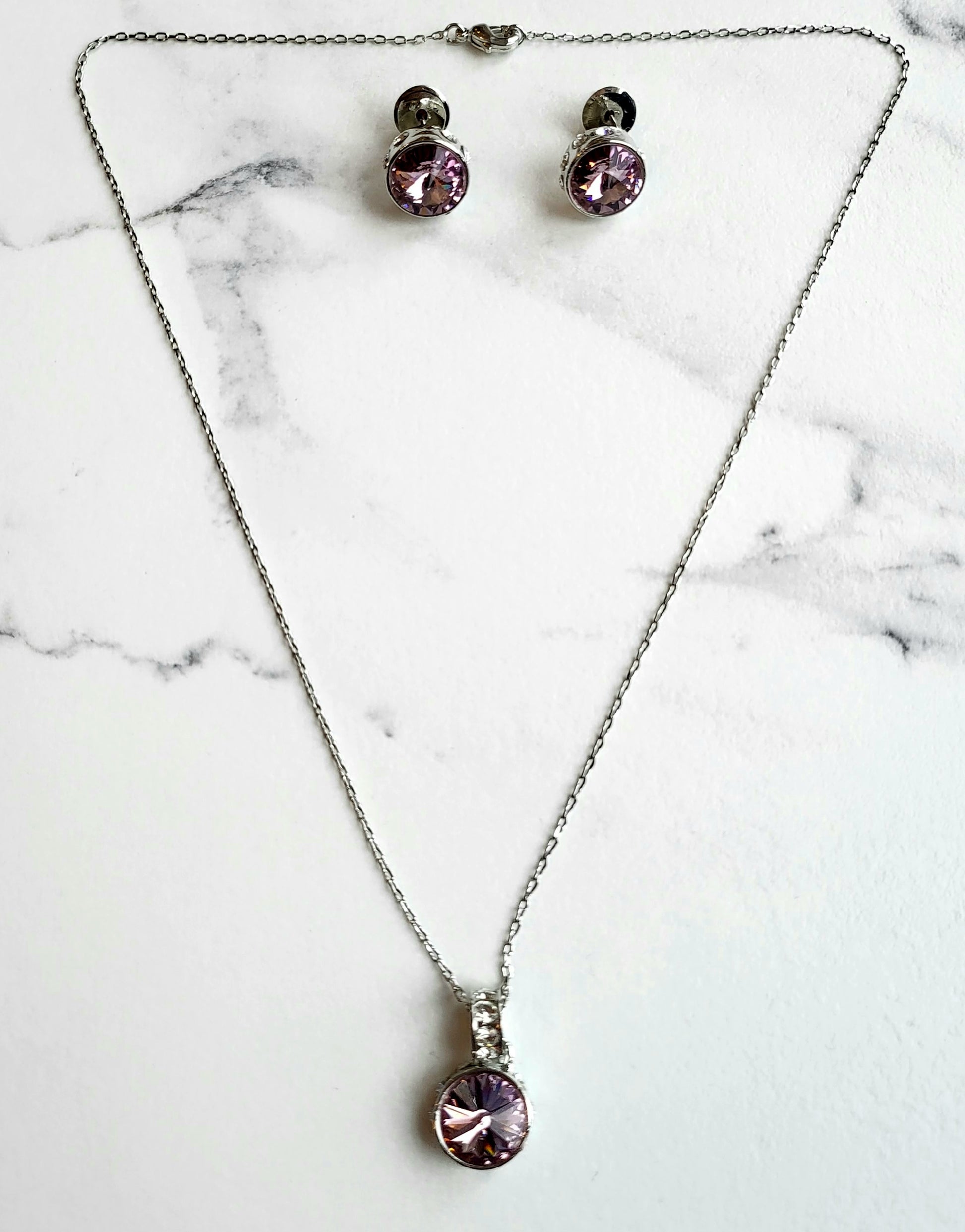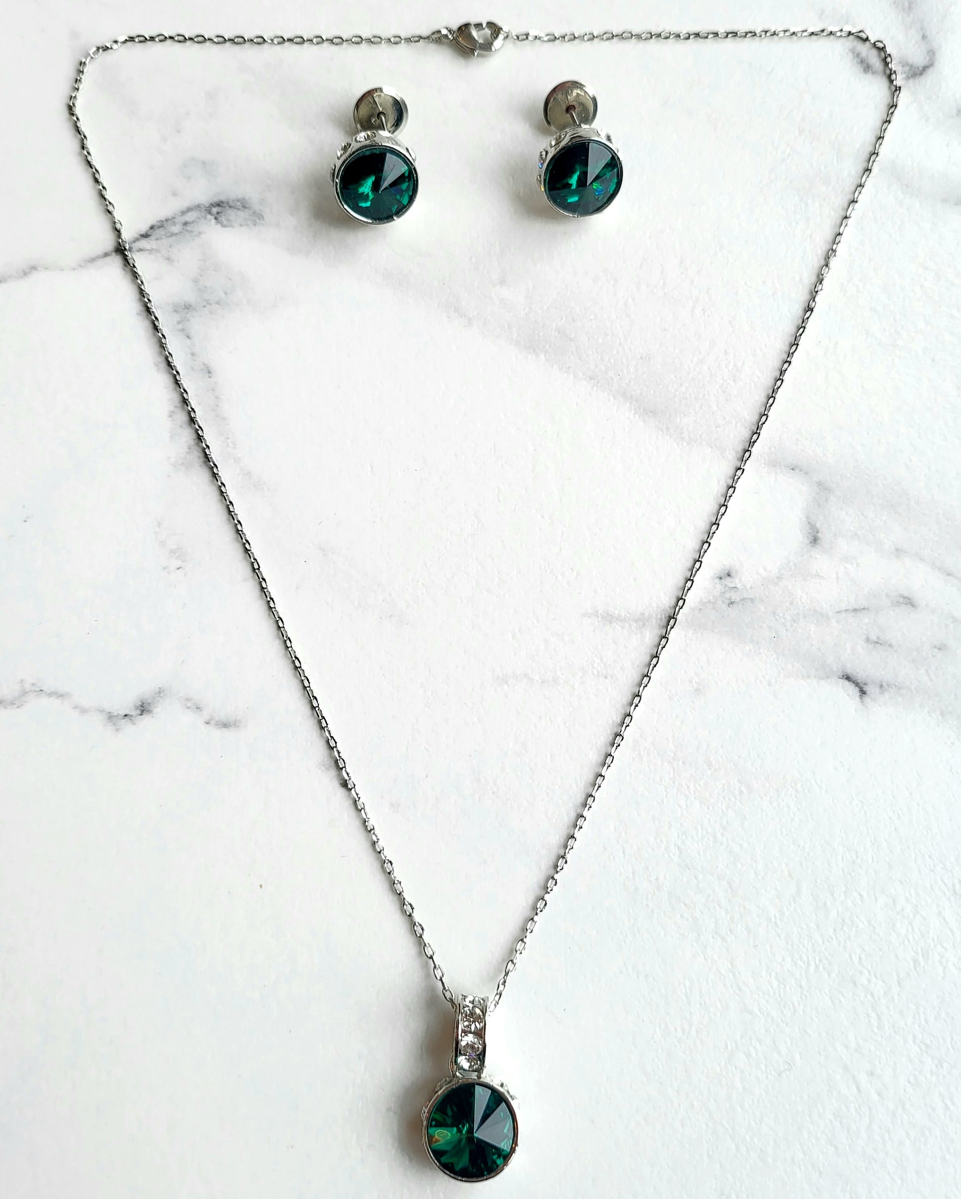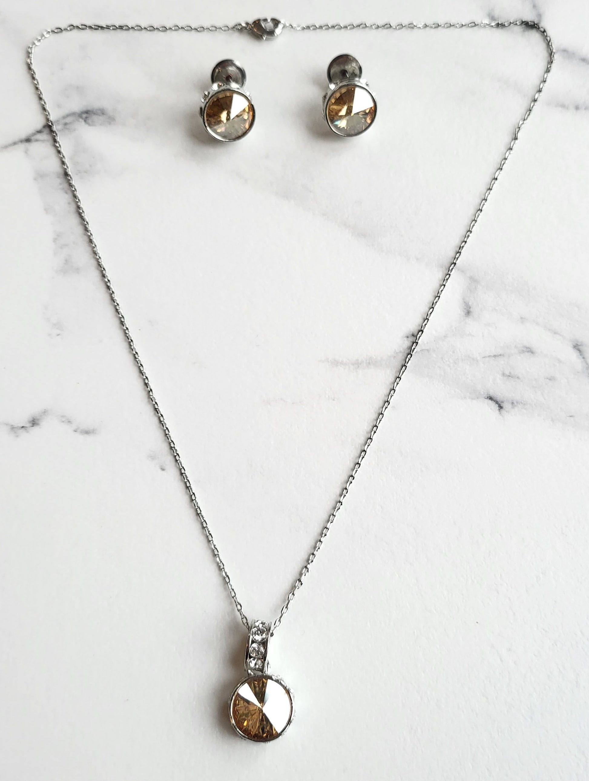 The Primrose Solitaire Crystal Pendant Set is a captivating ensemble that exudes timeless elegance and sophistication. Featuring a dome-shaped solitaire crystal pendant, this set adds a touch of glamour to any outfit. The pendant hangs gracefully from a delicate chain, drawing attention with its sparkling clarity and unique design. Paired with matching earrings, this set is perfect for weddings, parties, or special occasions where you want to make a statement.