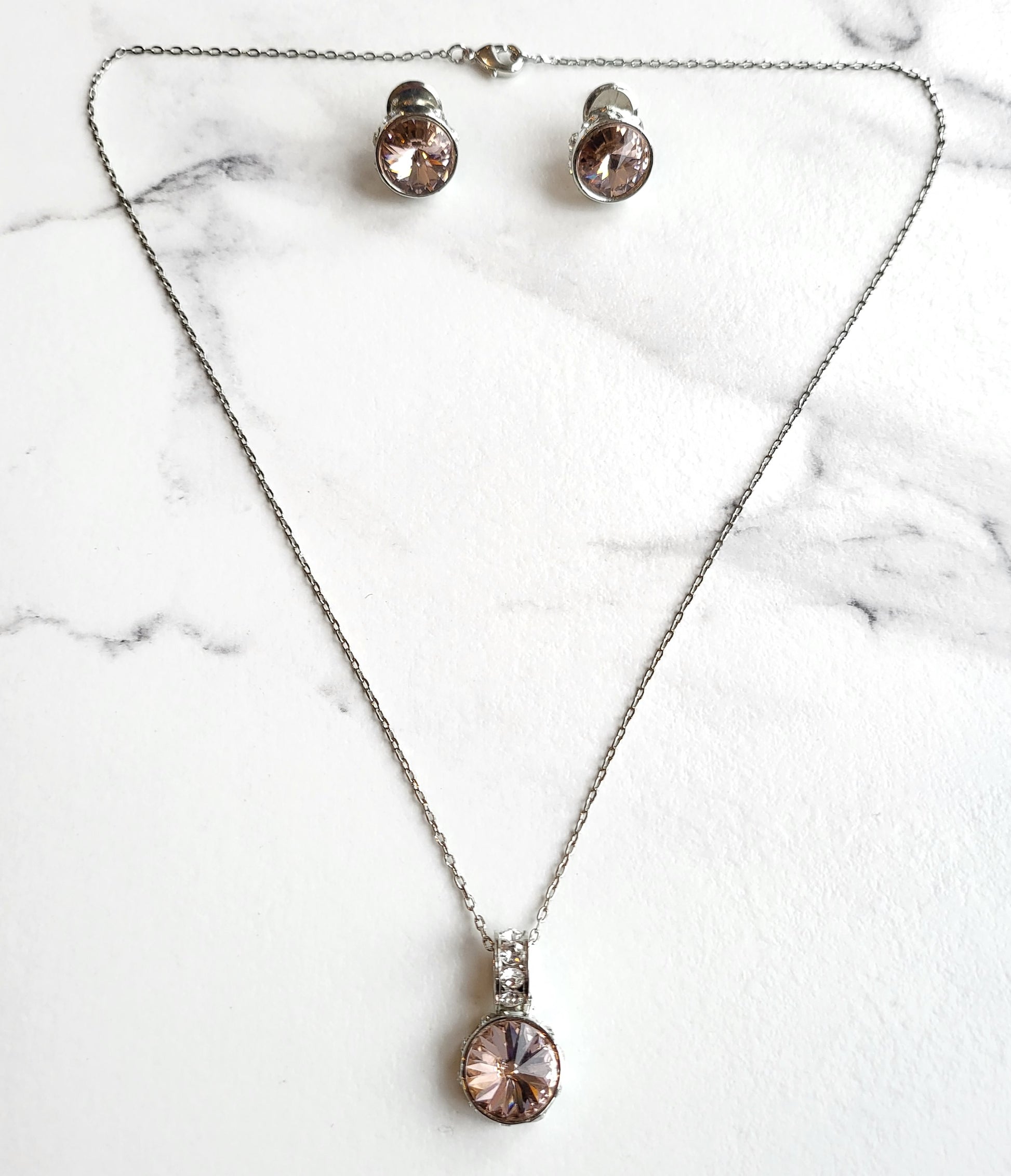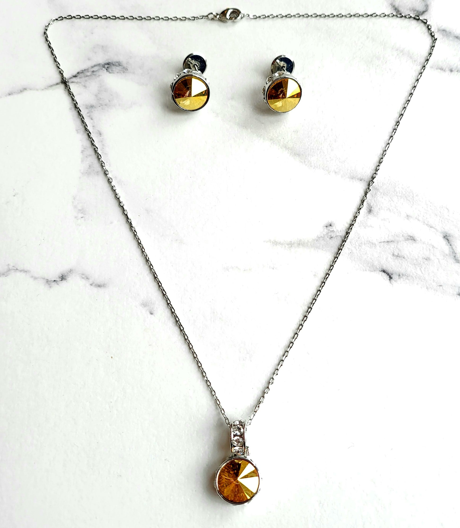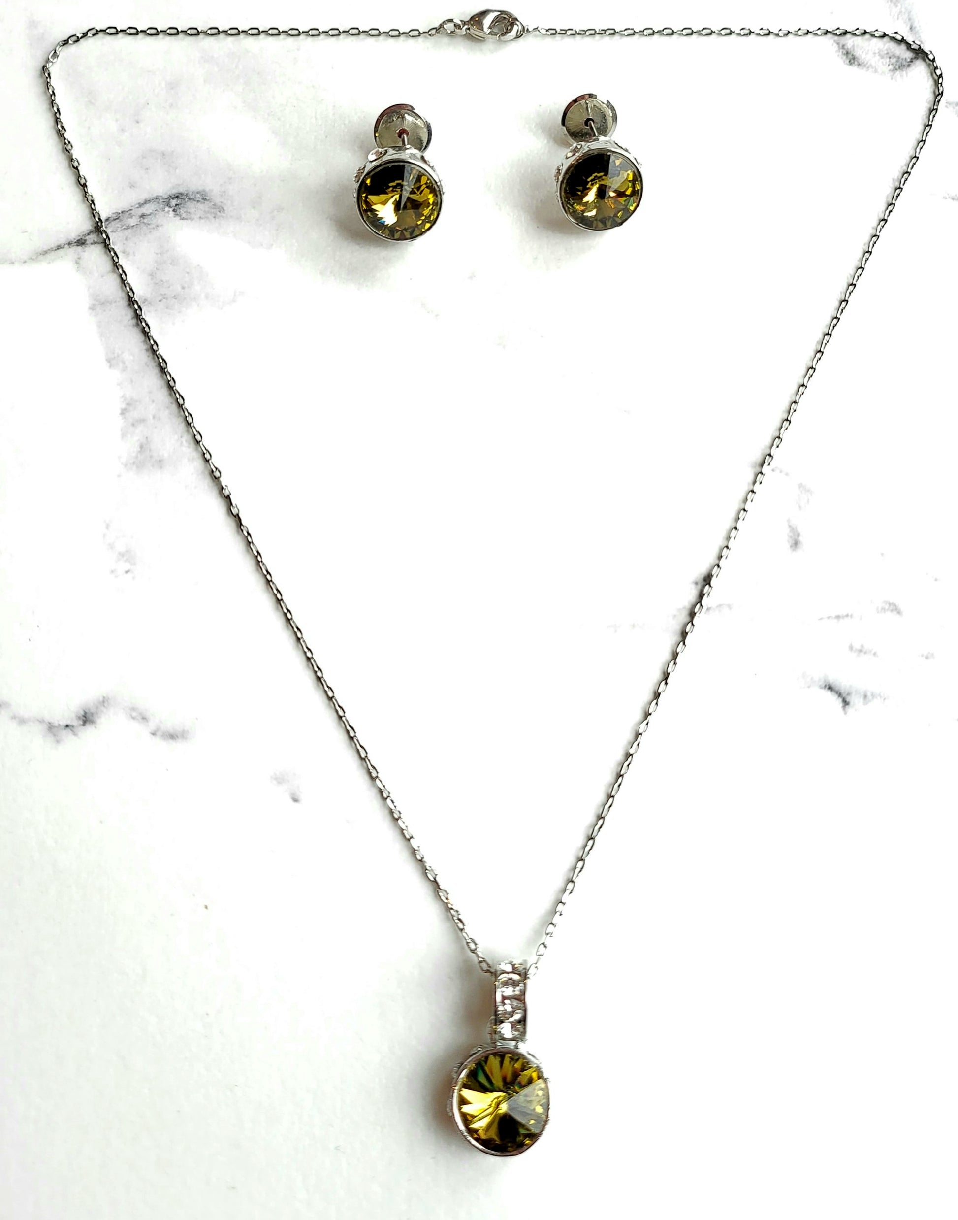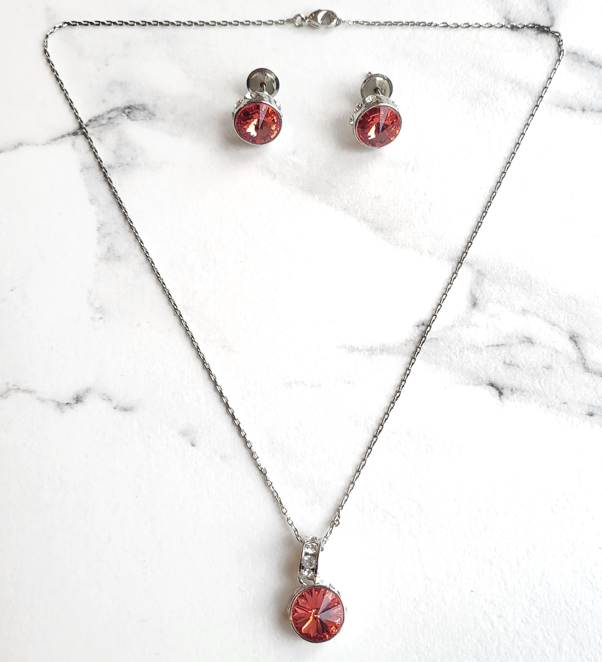The Primrose Solitaire Crystal Pendant Set is a captivating ensemble that exudes timeless elegance and sophistication. Featuring a dome-shaped solitaire crystal pendant, this set adds a touch of glamour to any outfit. The pendant hangs gracefully from a delicate chain, drawing attention with its sparkling clarity and unique design. Paired with matching earrings, this set is perfect for weddings, parties, or special occasions where you want to make a statement.