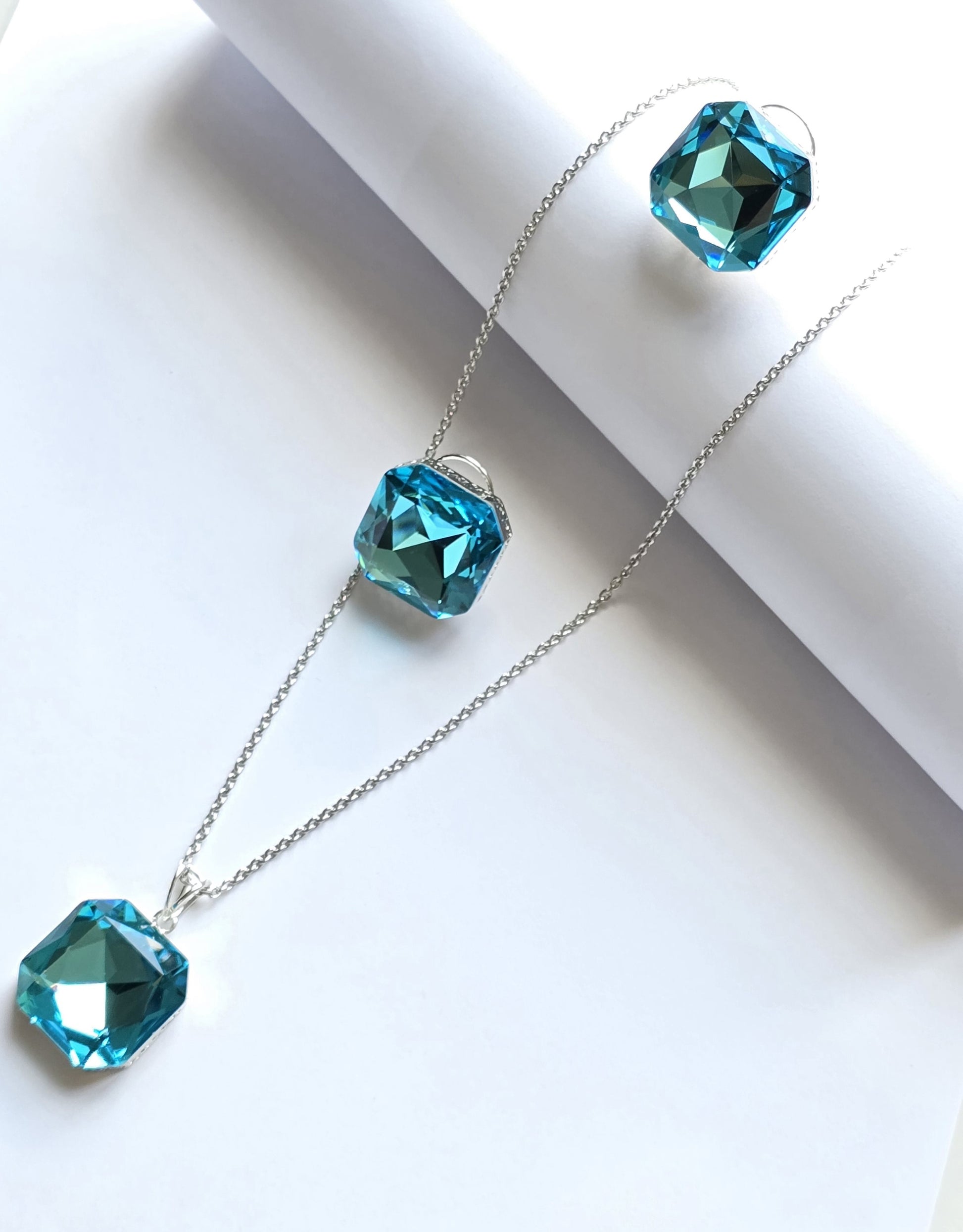 The Rosalind Giant Crystal Pendant Set is a stunning and eye-catching ensemble that commands attention with its grandeur and elegance. Featuring a large, dazzling crystal pendant, this set exudes luxury and sophistication. The pendant hangs from a delicate chain, drawing focus with its brilliance and exquisite craftsmanship. Paired with matching earrings, this set is perfect for special occasions, weddings, or formal events where you want to make a statement.