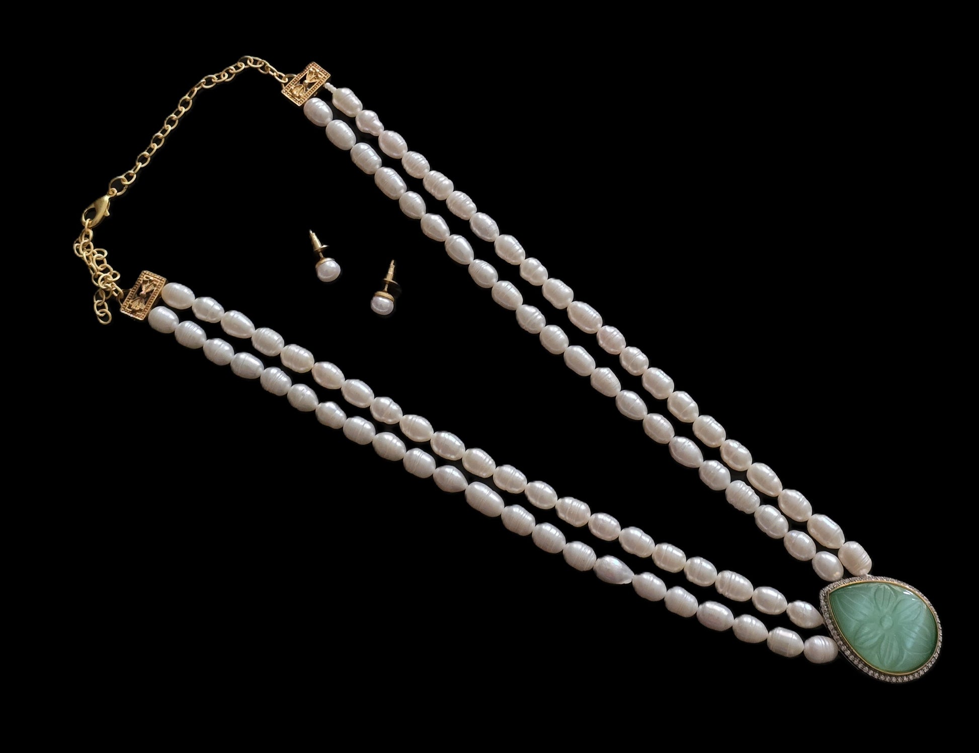 Bianca Cultured Freshwater Pearl Necklace Set with Carved Stone