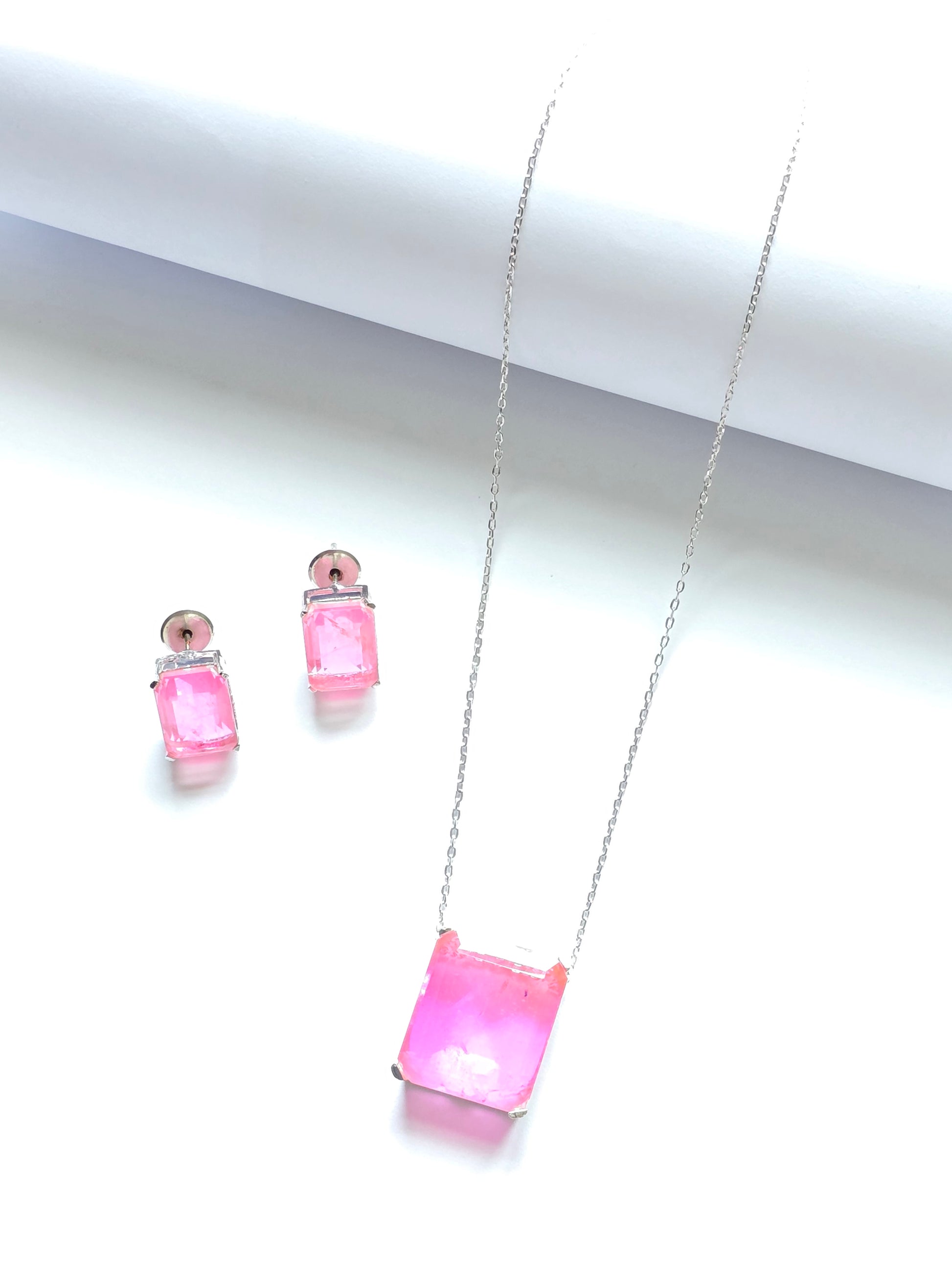 The Pippa Doublet Stone Pendant Set is a dazzling jewellery ensemble designed to captivate with its elegant simplicity. This set features a pendant adorned with exquisite doublet stone, arranged to create a striking focal point. The doublet stone lend a unique depth and brilliance to the pendant, adding to its allure. Accompanied by matching doublet studs , this set completes any ensemble with a touch of sophistication and glamour.